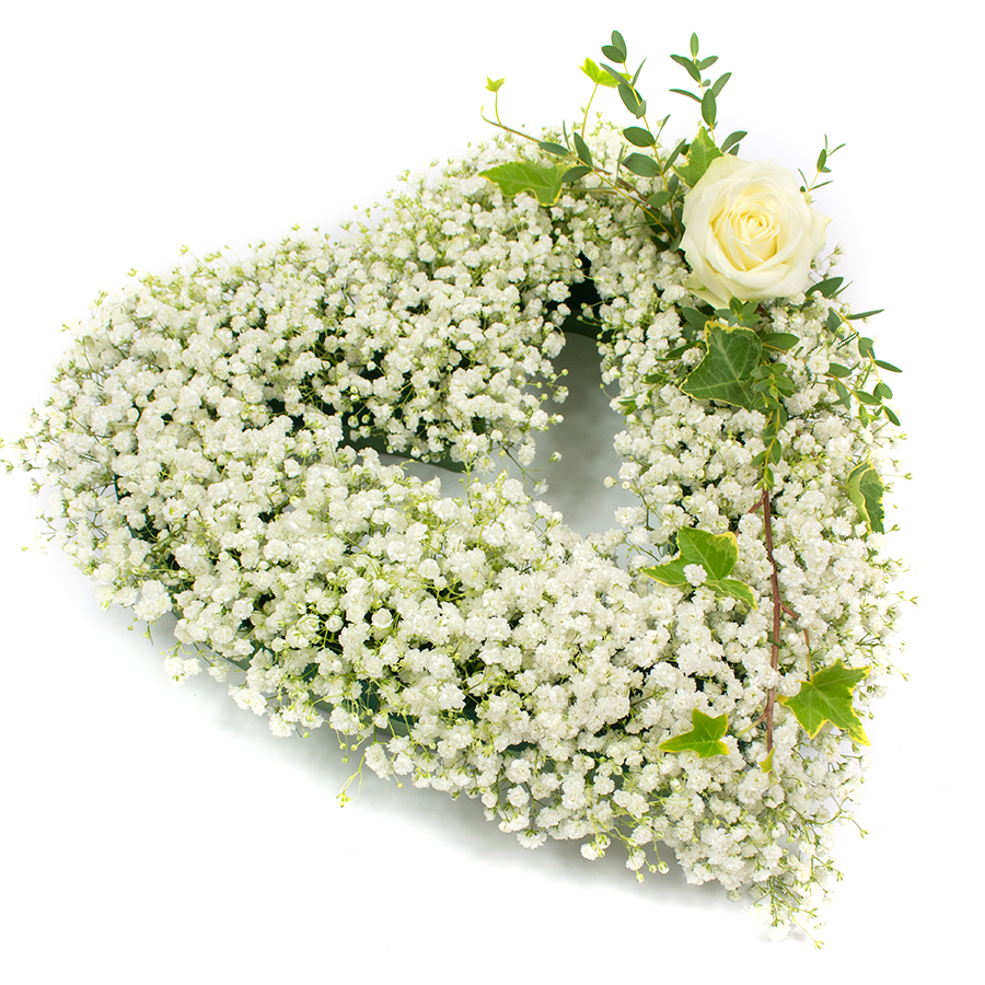 Express your love with our charming heart tribute bouquet, thoughtfully arranged by our talented florists. This enchanting arrangement features soft gypsophila alongside elegant white roses, symbolizing pure and sincere love.